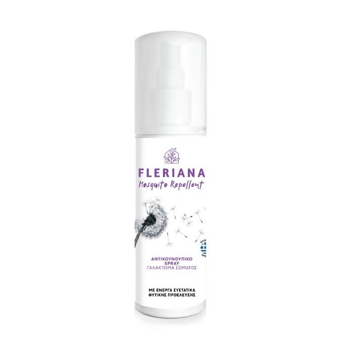 Το Fleriana Mosquito Repellent είναι ένα φυσικό αντικουνουπικό γαλάκτωμα σε μορφή σπρέι. Περιέχει εκχυλίσματα λουλουδιών, Menthoglycol και εκχύλισμα από τα άνθη του ευκαλύπτου της λεμονιάς – eucalyptus citiodora, με δράση που διαρκεί έως και 5 ώρες.