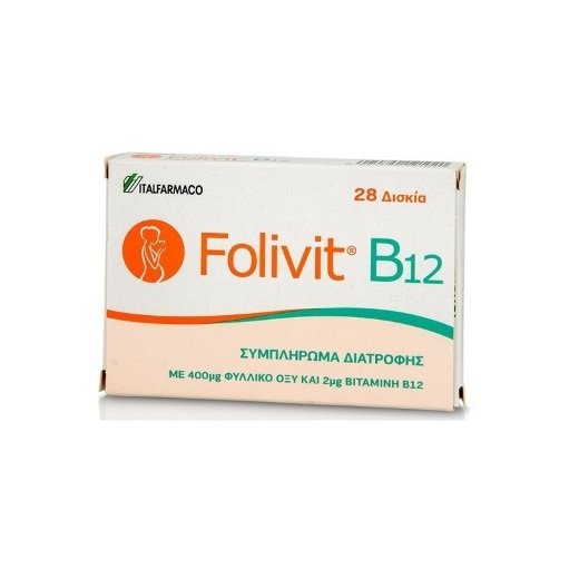 Tο Folivit B12 είναι συμπλήρωμα διατροφής που περιέχει φυλλικό οξύ 400μg και βιταμίνη Β12 2mg, προσφέροντας τα πλεονεκτήματα του φυλλικού οξέος και της βιταμίνης Β12 στον οργανισμό. Τα 400μg (0,4mg) είναι η συνιστώμενη ημερήσια δόση από τις Εθνικές και Διεθνείς Αρχές Υγείας για την πρόληψη των Δυσπλασιών του Νευρικού Σωλήνα στο γενικό πληθυσμό.