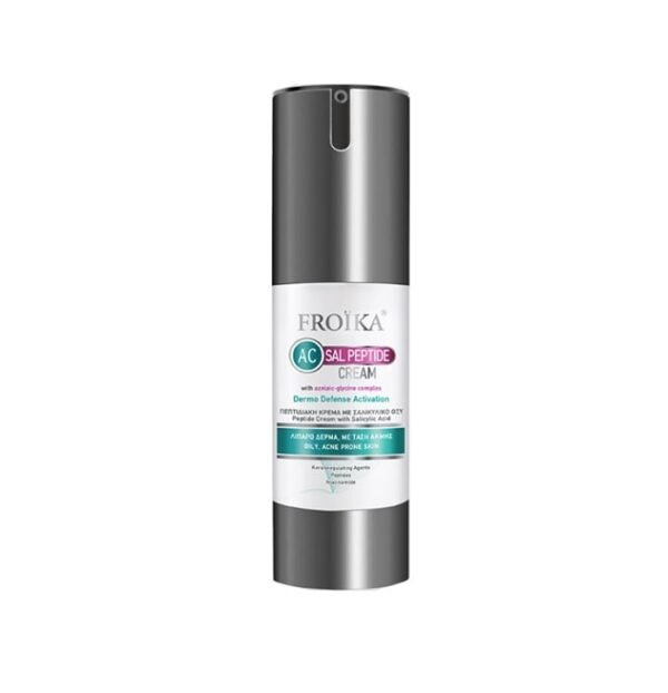 Η AC Sal Peptide Cream είναι μία σμηγματορυθμιστκή, αντιμικροβιακή, κερατορυθμιστική, καταπραϋντική, στυπτική, αποχρωματιστική κρέμα με μη λιπαρή- ματ υφή που ενυδατώνει το δέρμα ενώ χαρίζει λείο, ματ δέρμα με λάμψη και χρωματική ομοιομορφία.