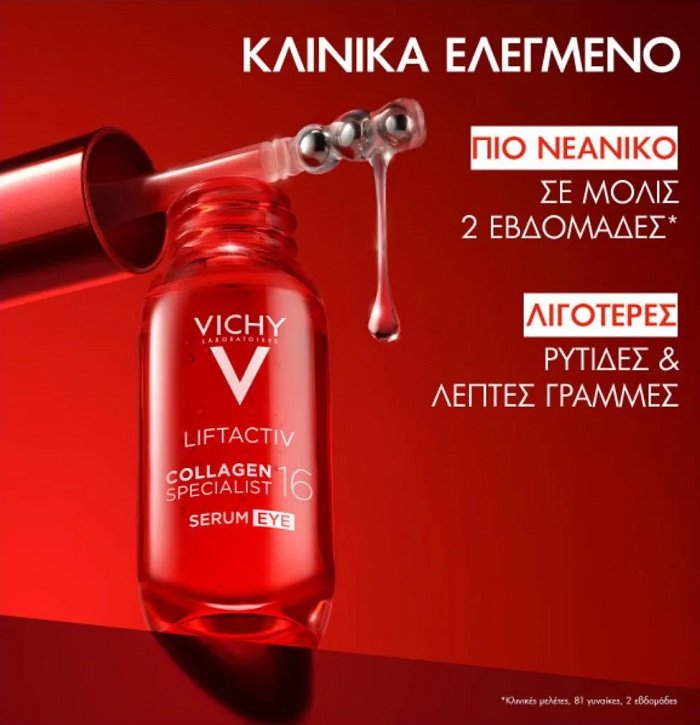 Vichy Liftactiv Collagen Specialist 16 Eye Serum, Ορός Ματιών για Ενίσχυση του Κολλαγόνου & Αναζωογόνηση – 15ml