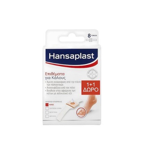 Το Hansaplast Επιθέματα για Κάλους μαλακώνει τους κάλους χάρη στη δραστική του ουσία που περιέχει, το σαλικυλικό οξύ.