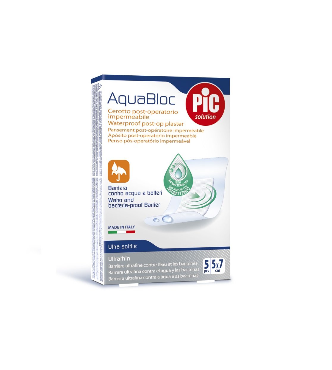 Pic Solution AquaBloc Waterproof UltraThin Sterile Post-op Plasters With Antibacterial Pad.